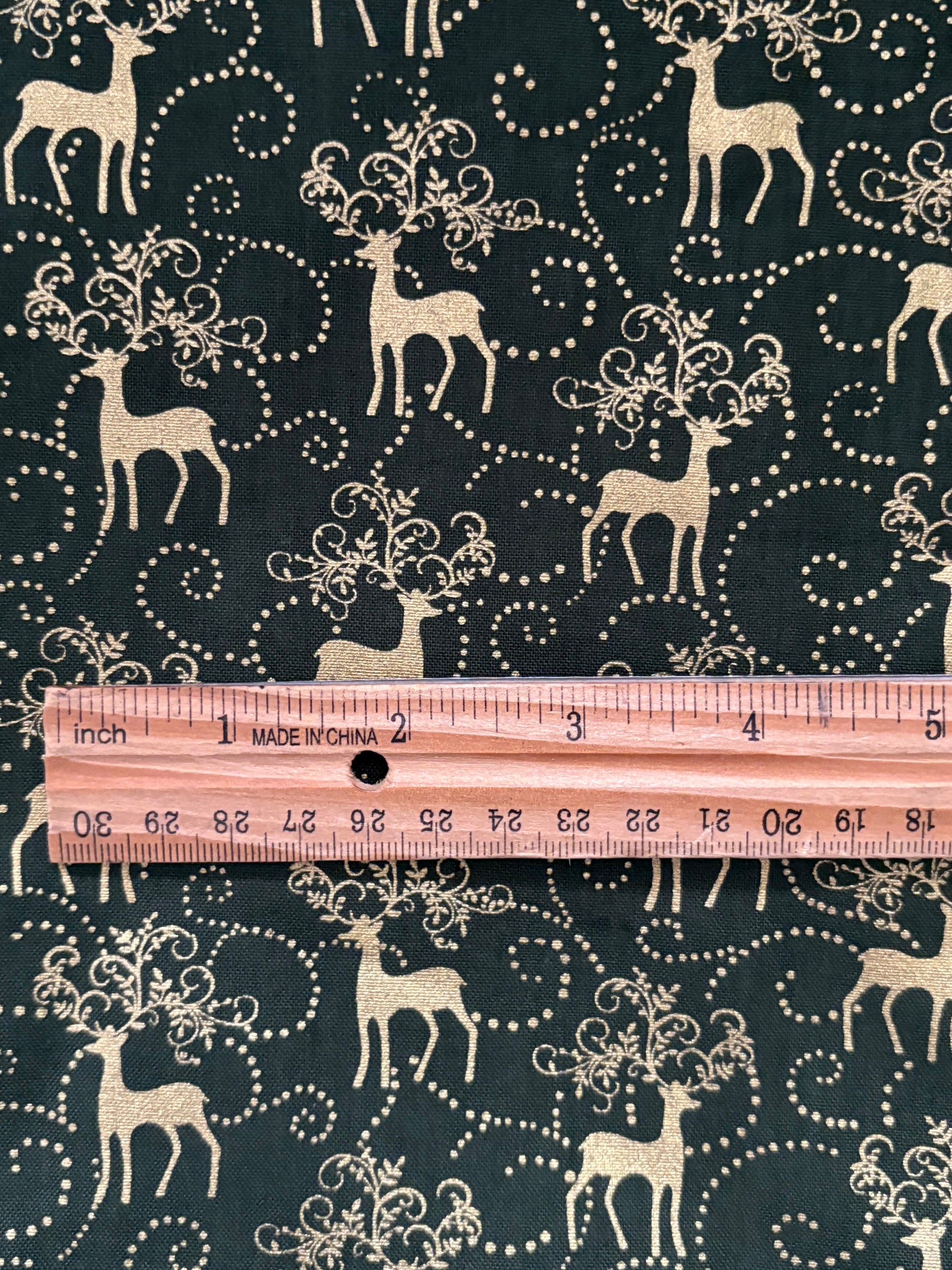 2 YARDS Benartex Golden Holiday Metallic Gold Deer Dover Hil