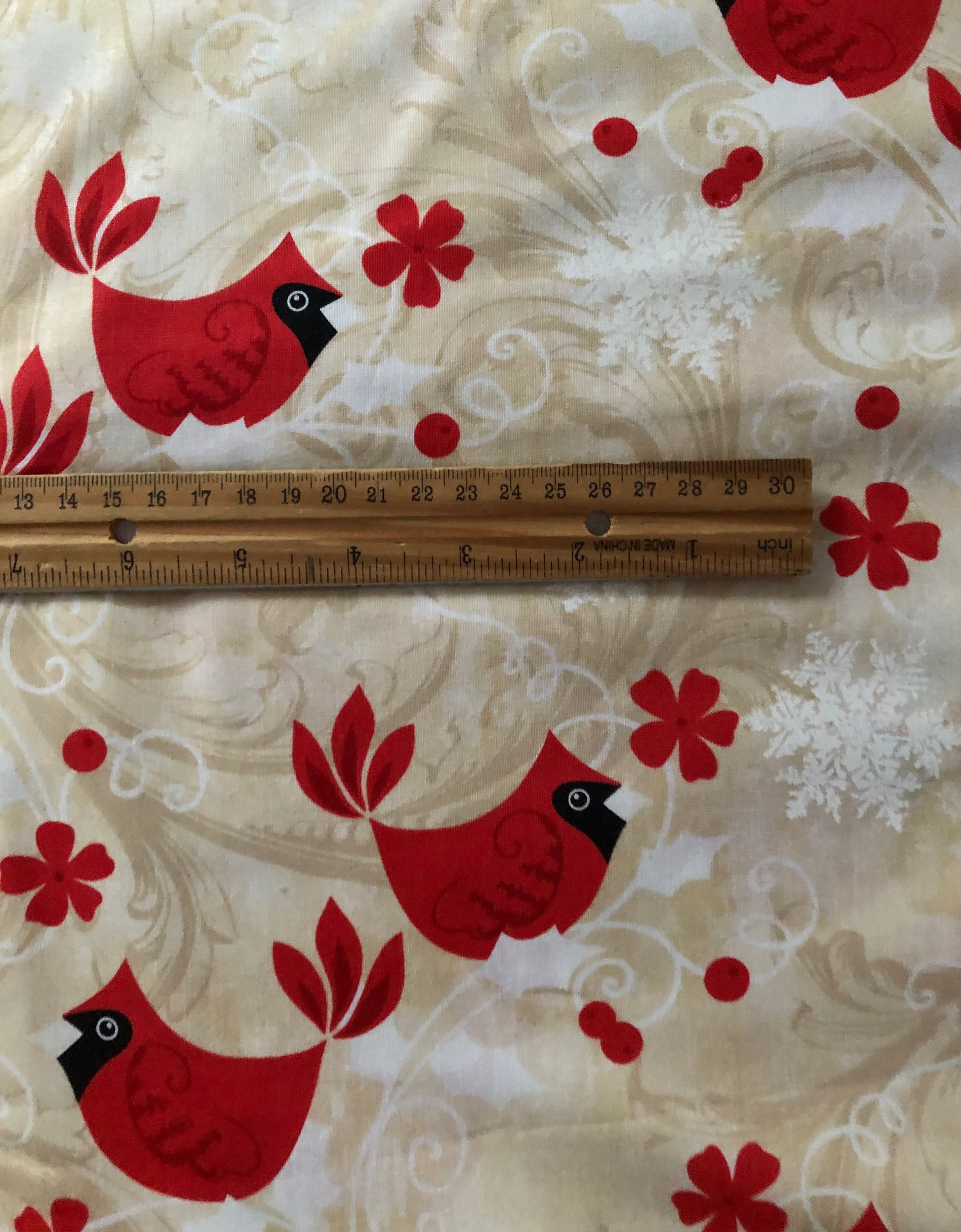 Benartex Kanvas Winter Story Red Cardinals by Maria Kalinowski, Designer Cotton, Quilting Fabric, Sold by YARD