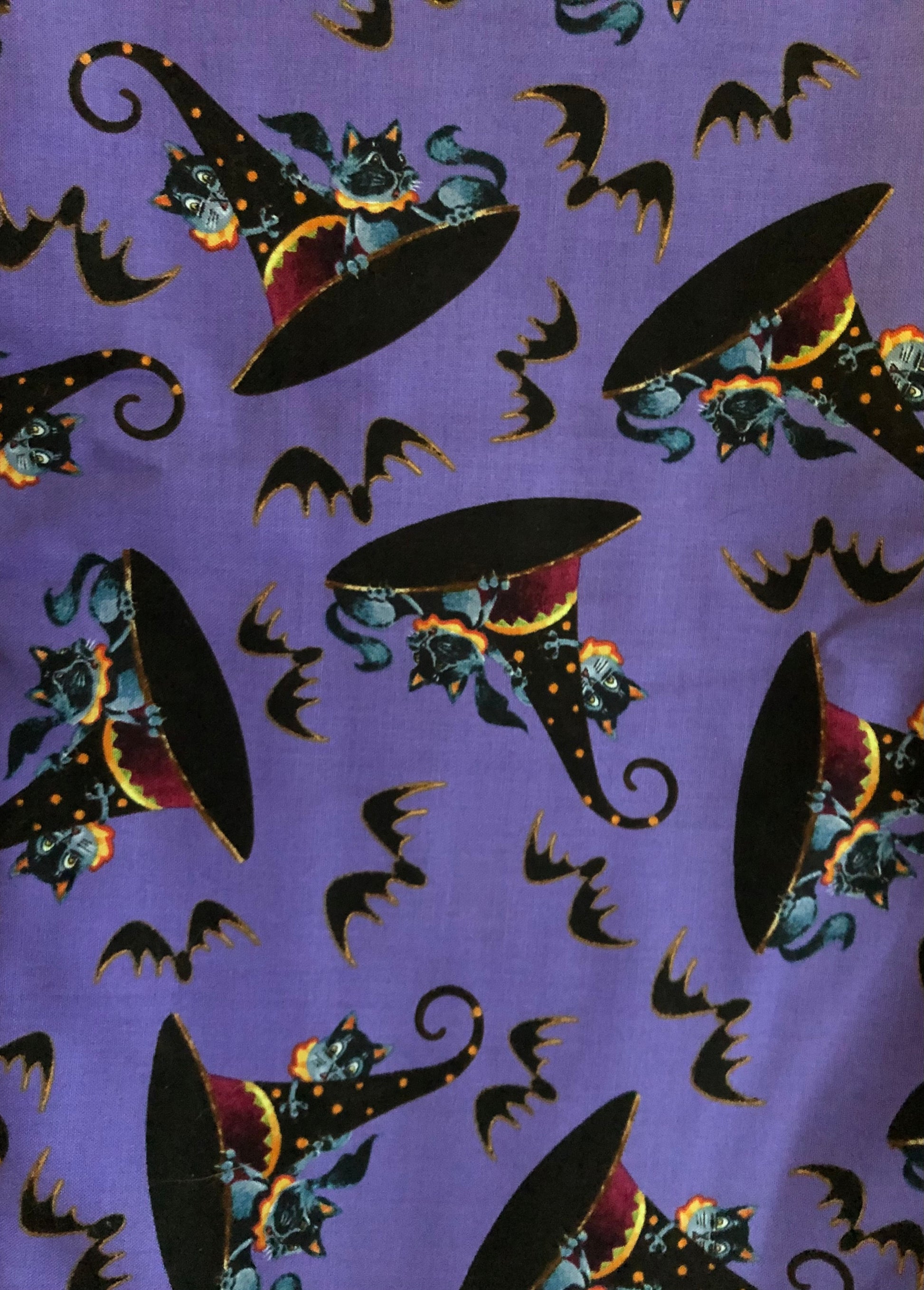 Blank Quilting by David Galchutt Witchful Thinking, Black Cats and Witches Hats on Purple, Designer Cotton, Quilting Fabric, Sold by YARD