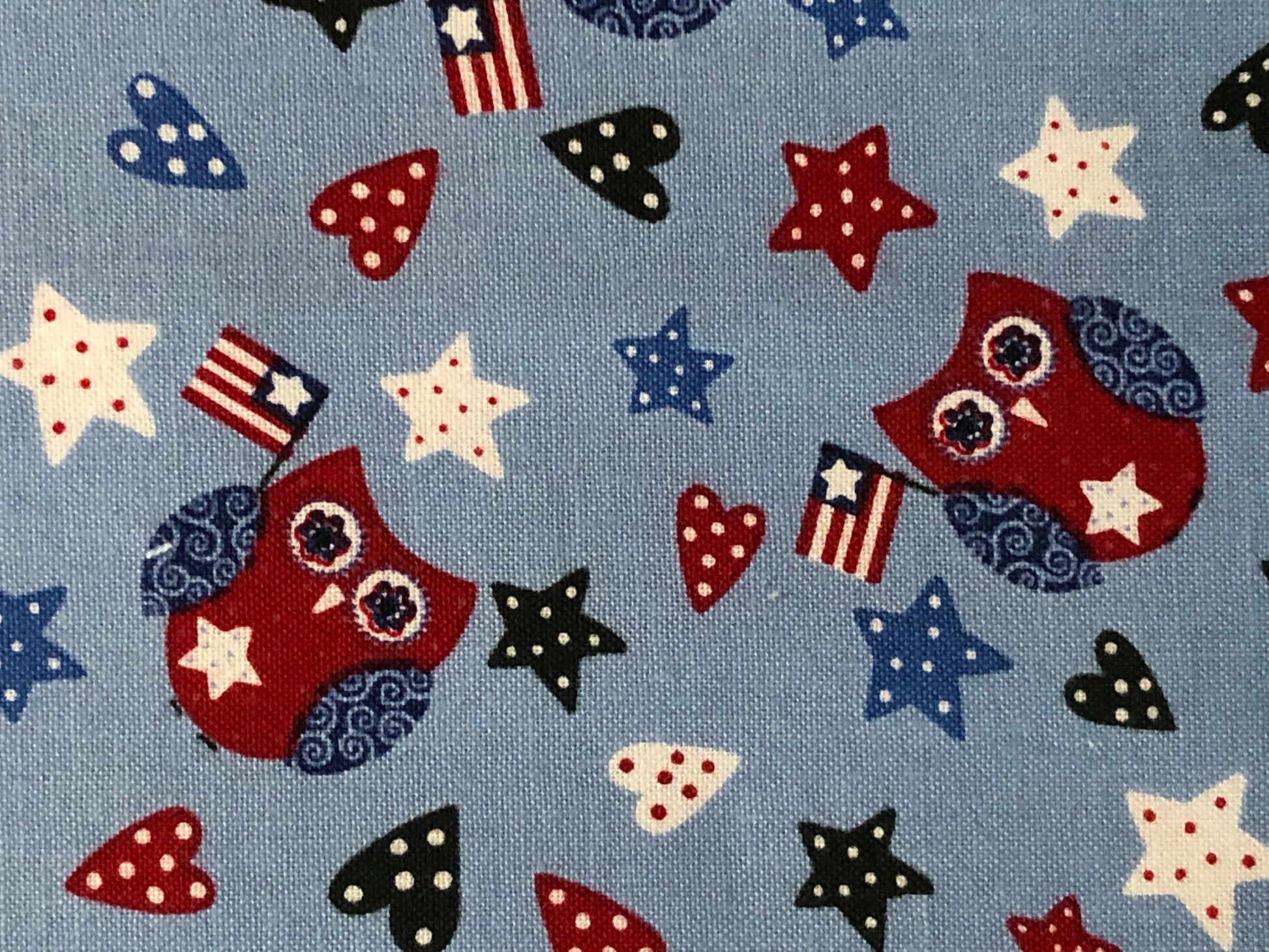 Blank Quilting Land That I Love Patriotic American Flags, Stars, Hearts, and Owls, Designer Cotton, Quilting Fabric