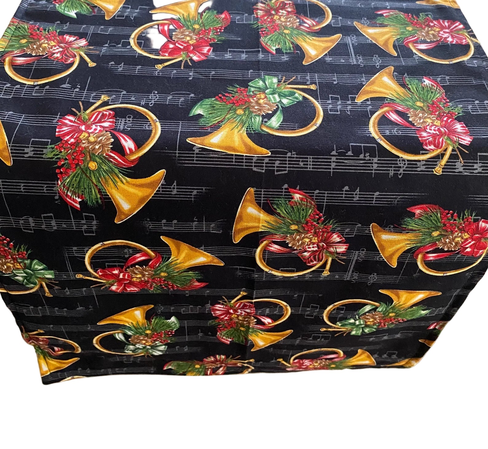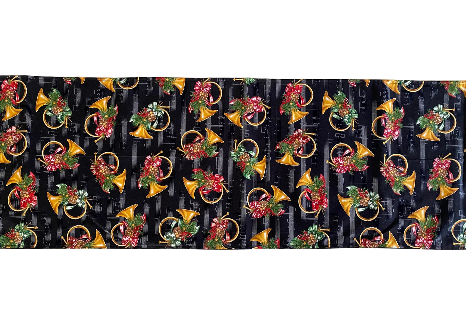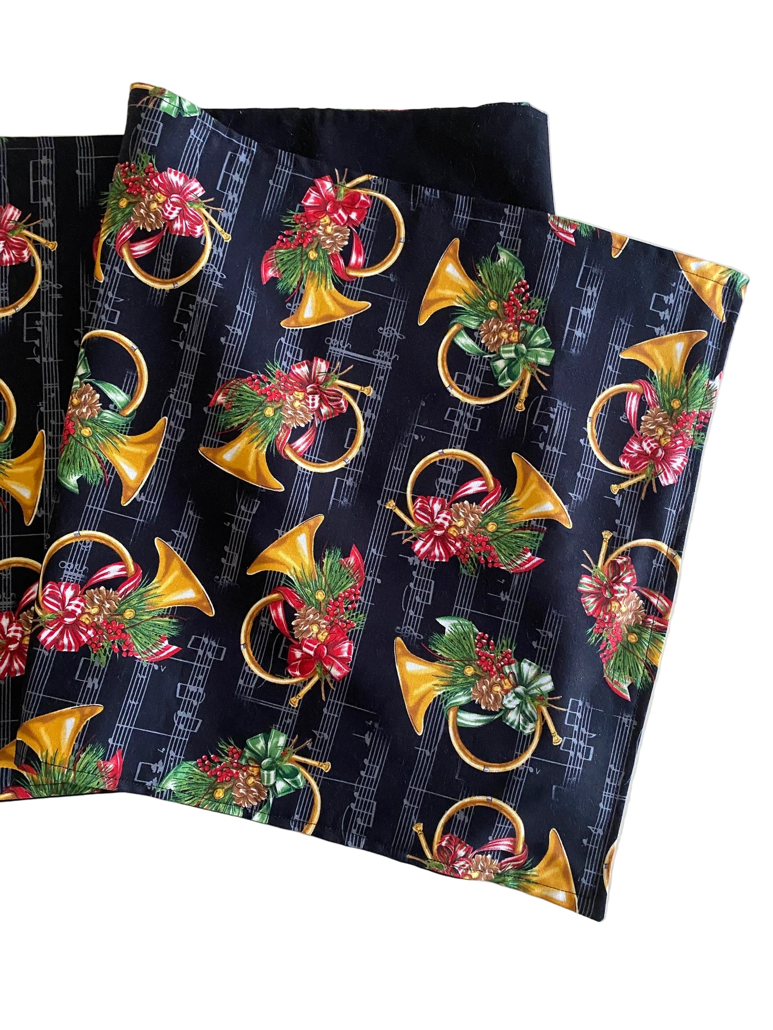 Christmas Table Runner, Christmas French Horn Table Runner, Christmas Music Table Runner