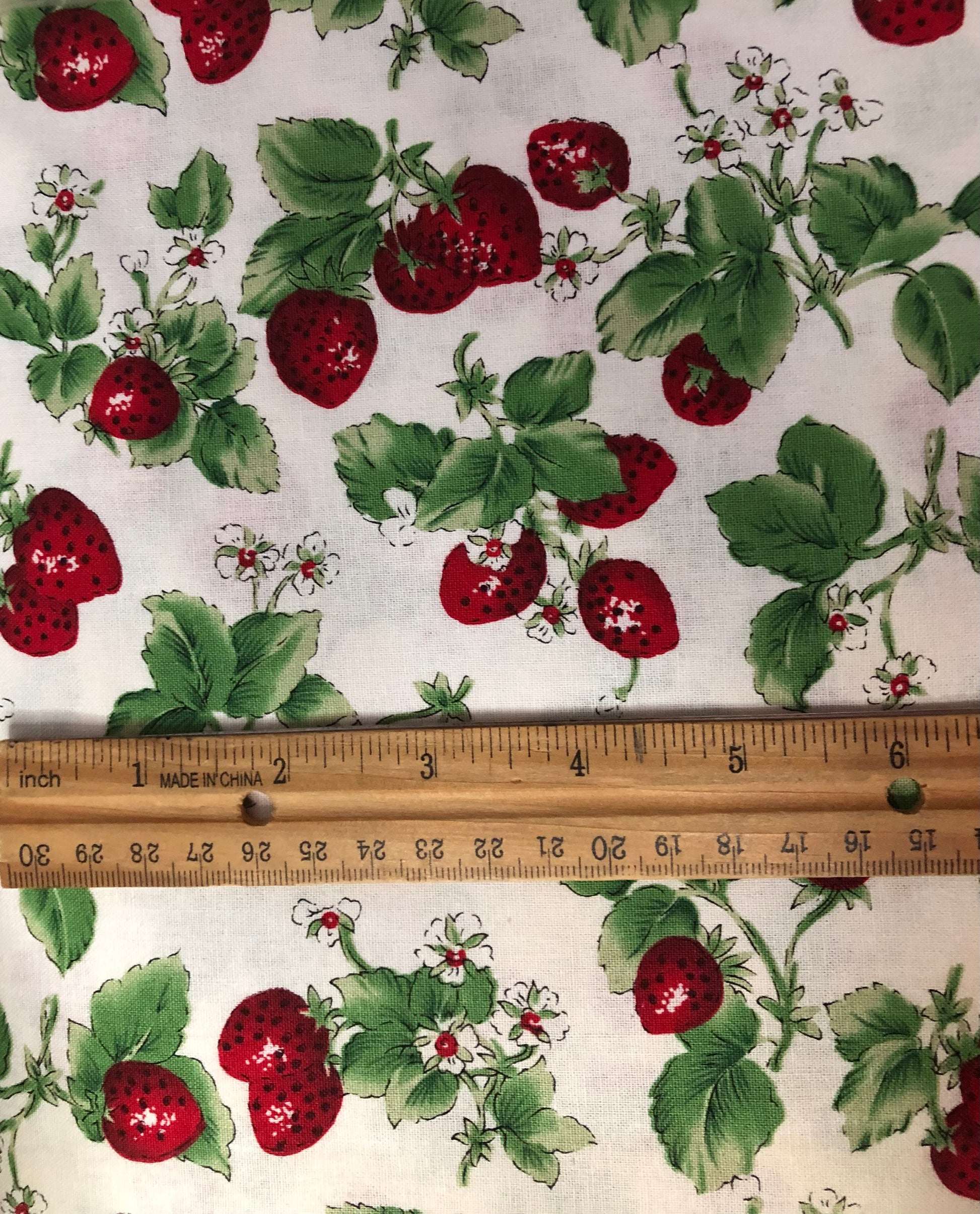 David Textiles Rose and Hubble Strawberries with Leaves