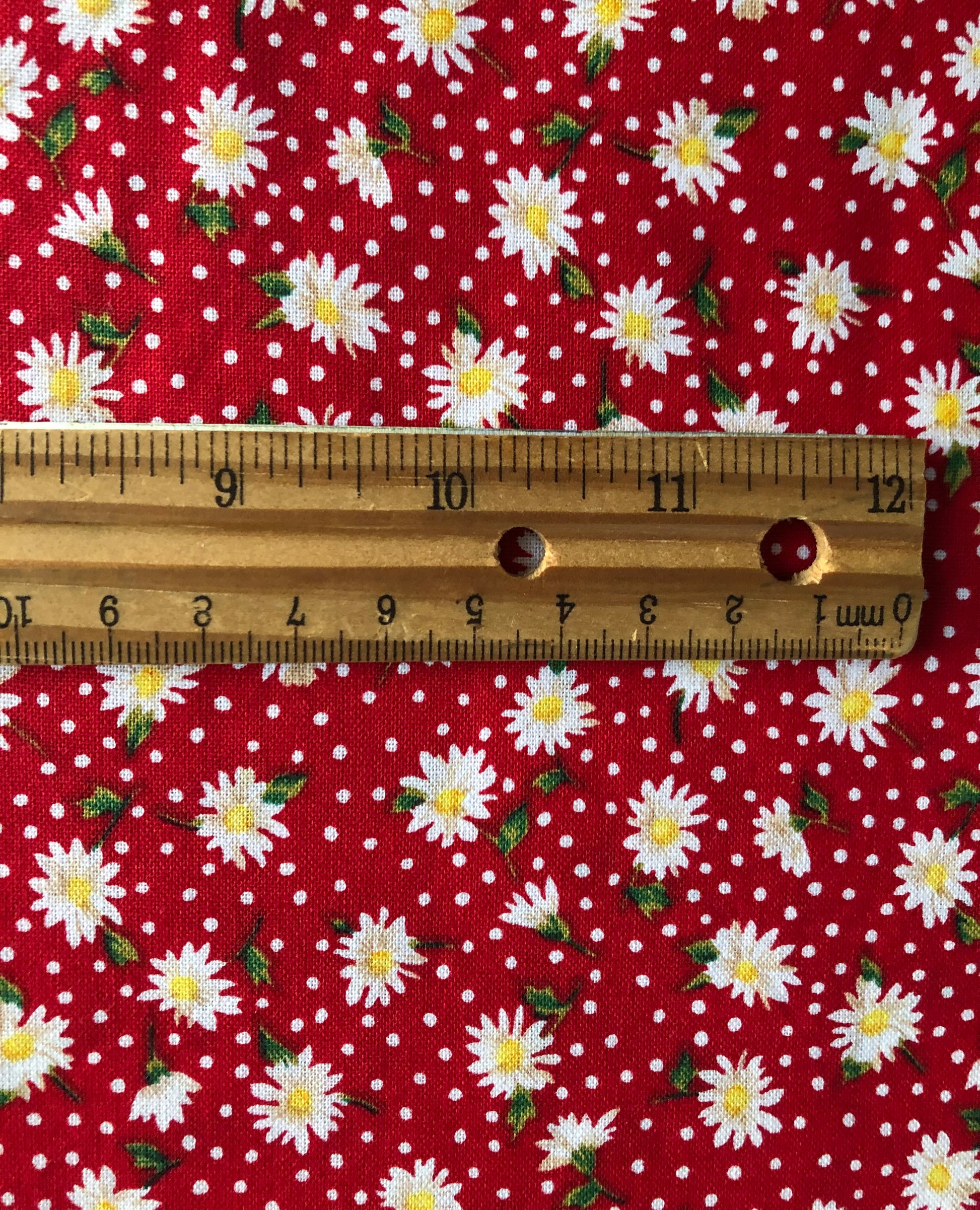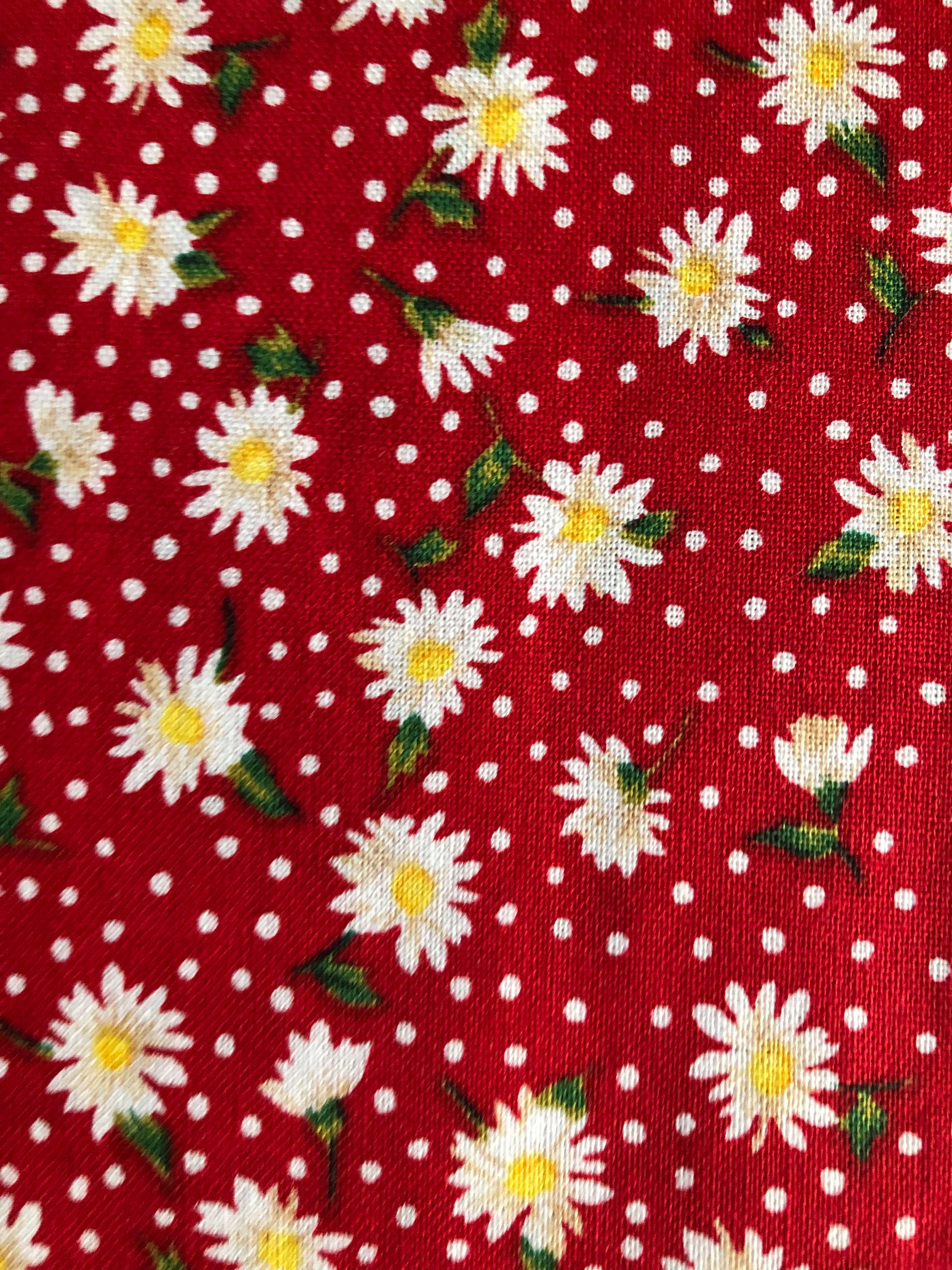 Dorothy's Daisies on Red with White Polka Dots Floral Fabric