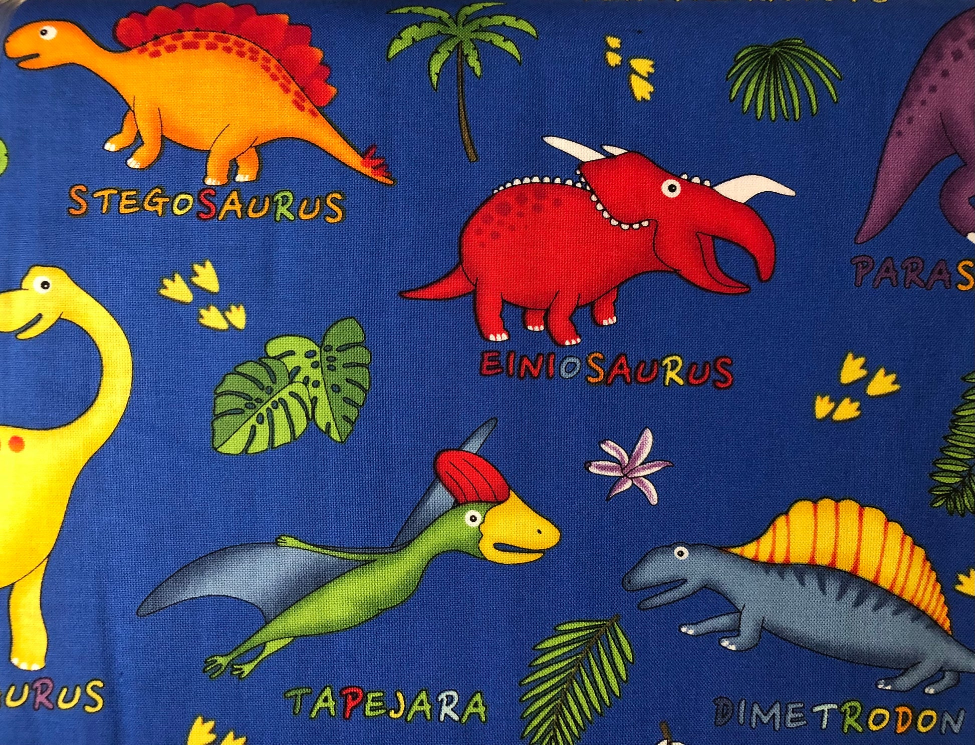 Fabri Quilt Lost World Dinosaur Blue, Designer Cotton Fabric, Quilting Fabric, Sold by YARD