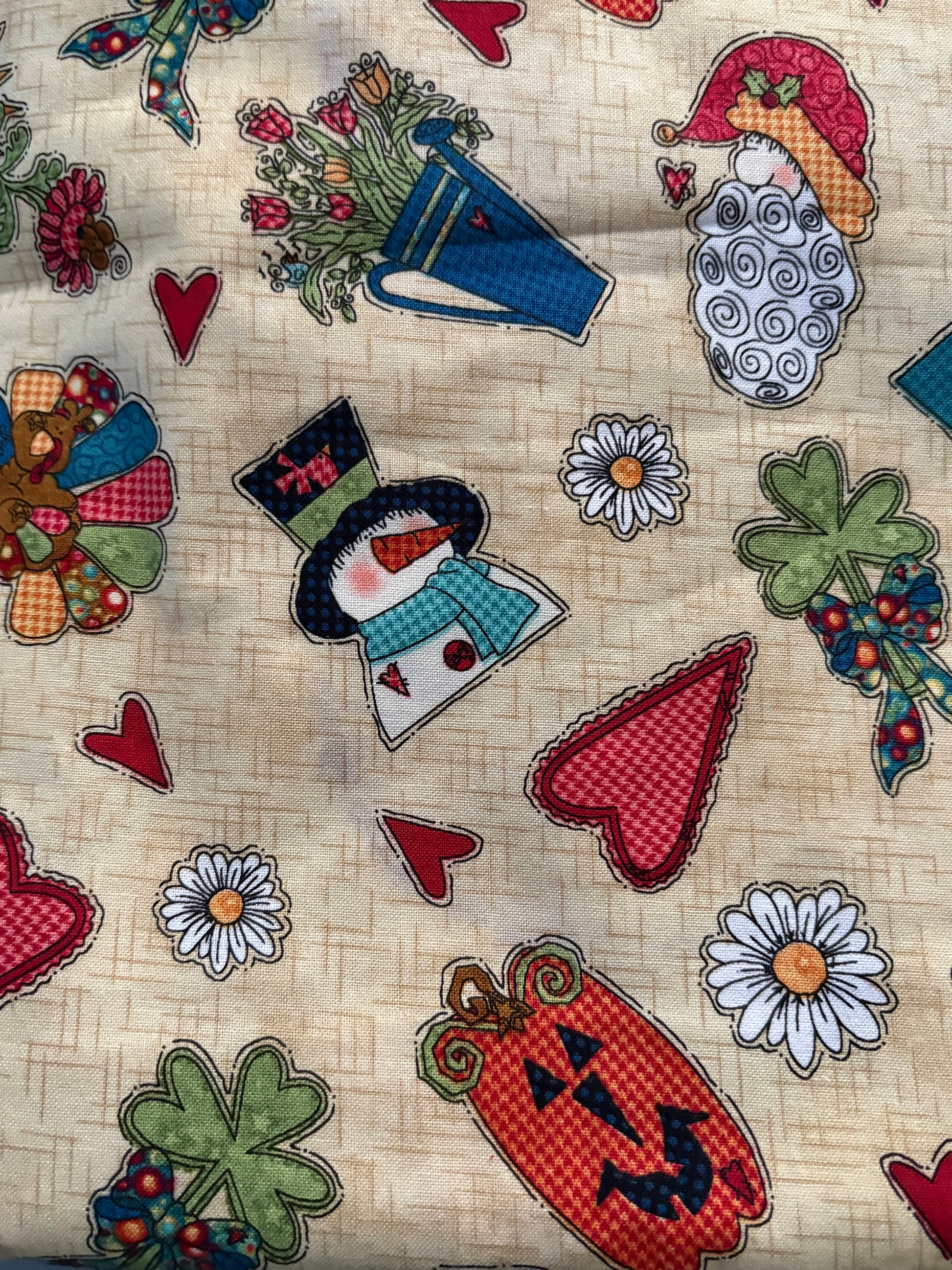 Henry Glass Doodle Days Calendar Beige by Leanne Anderson Whole Country Caboodle, Designer Cotton, Quilting Fabric, Sold by YARD