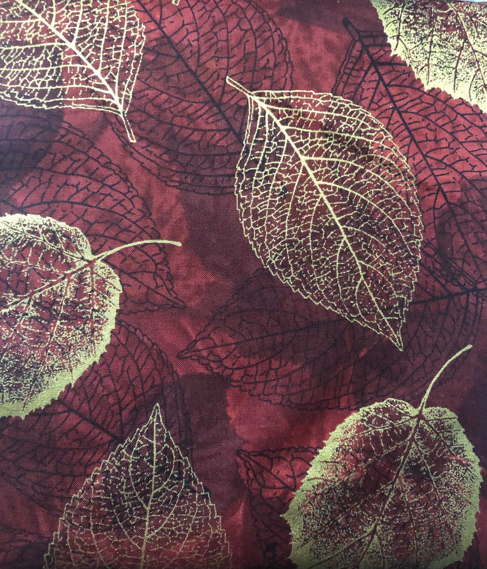 Hoffman Fabric "Falling for You" Gold Metallic Autumn Leaves on Brown