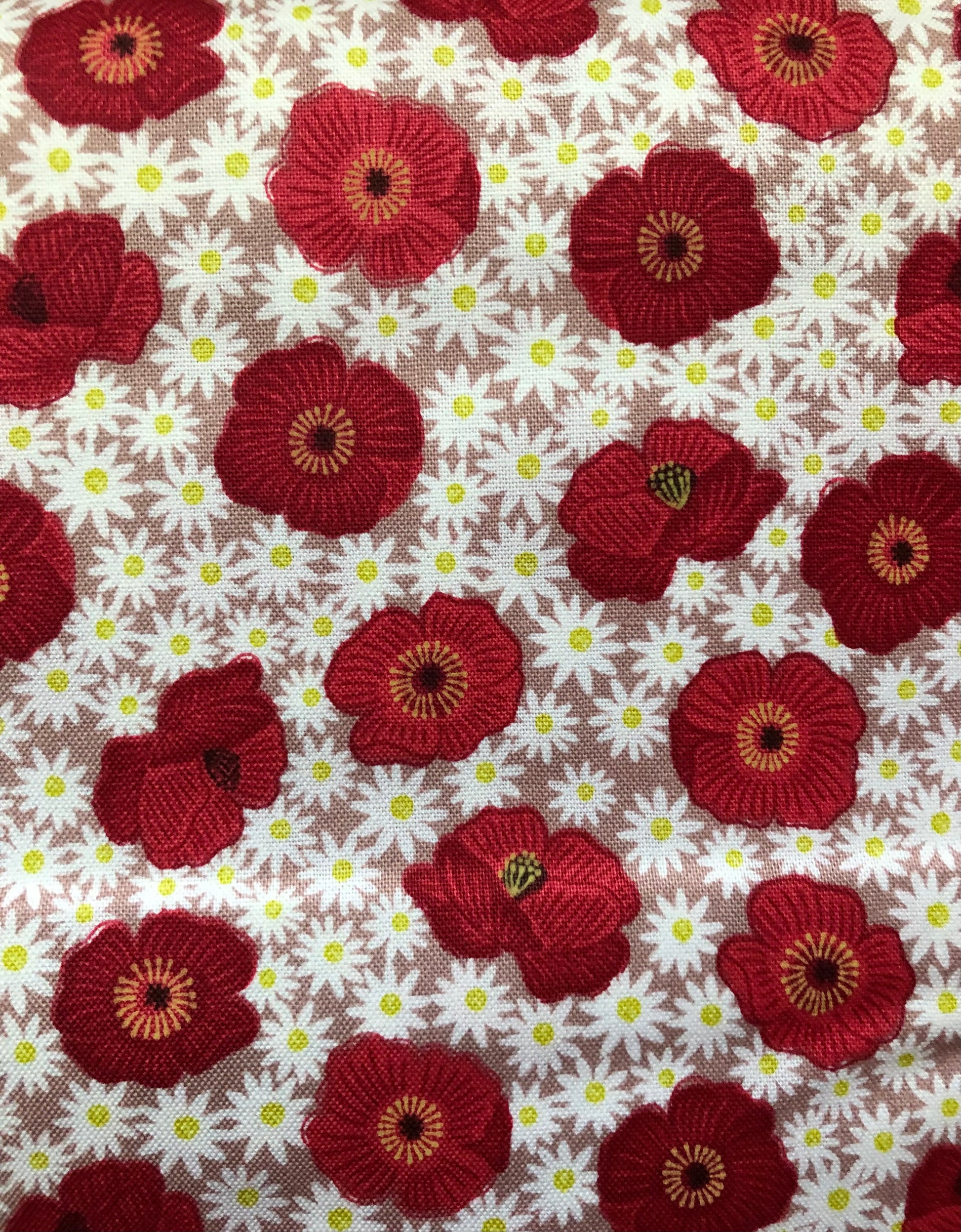 Lewis & Irene "Grandma's Garden" Red Poppies and Daisies, Designer Cotton, Quilting Fabric, Sold by YARD