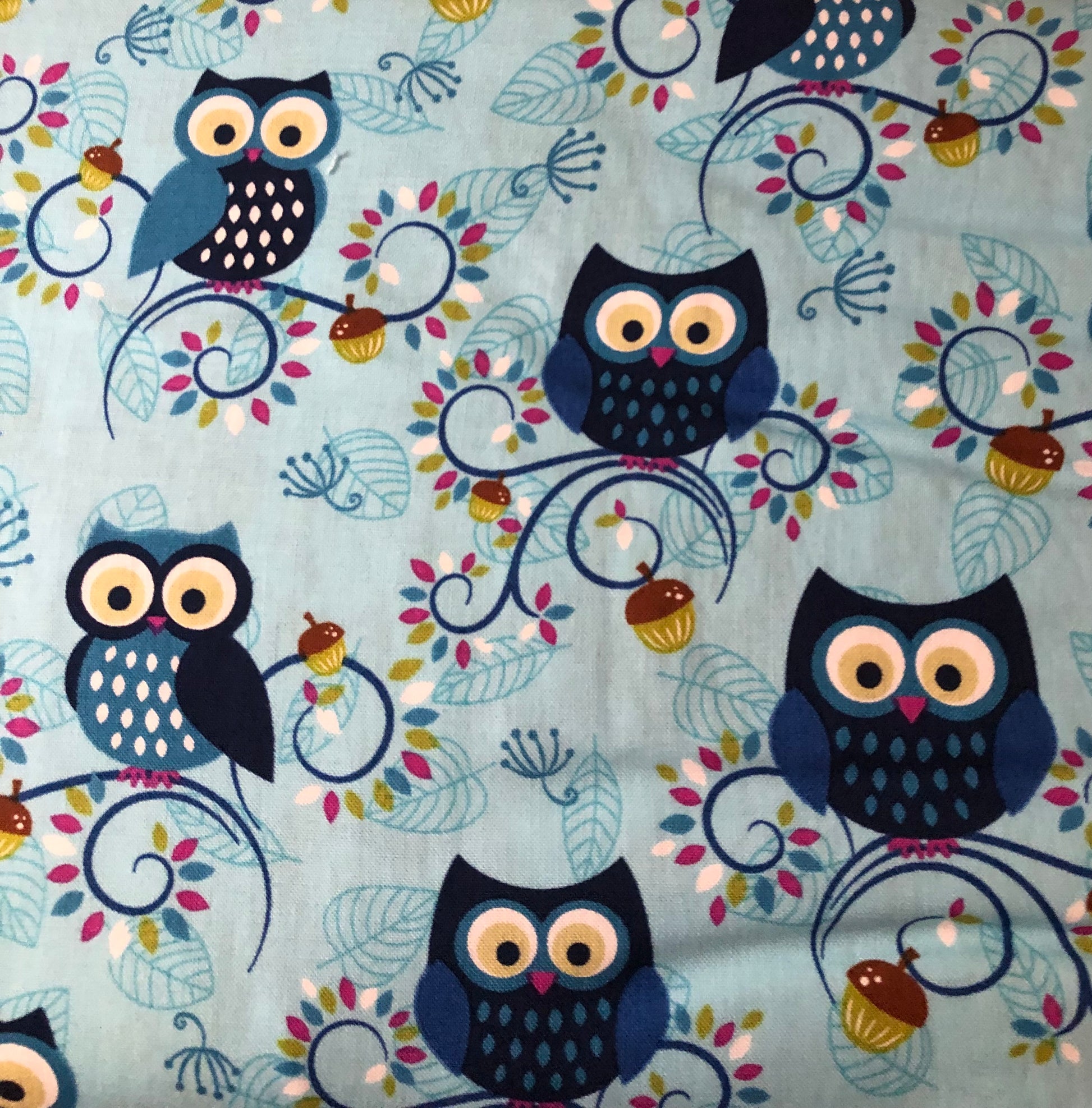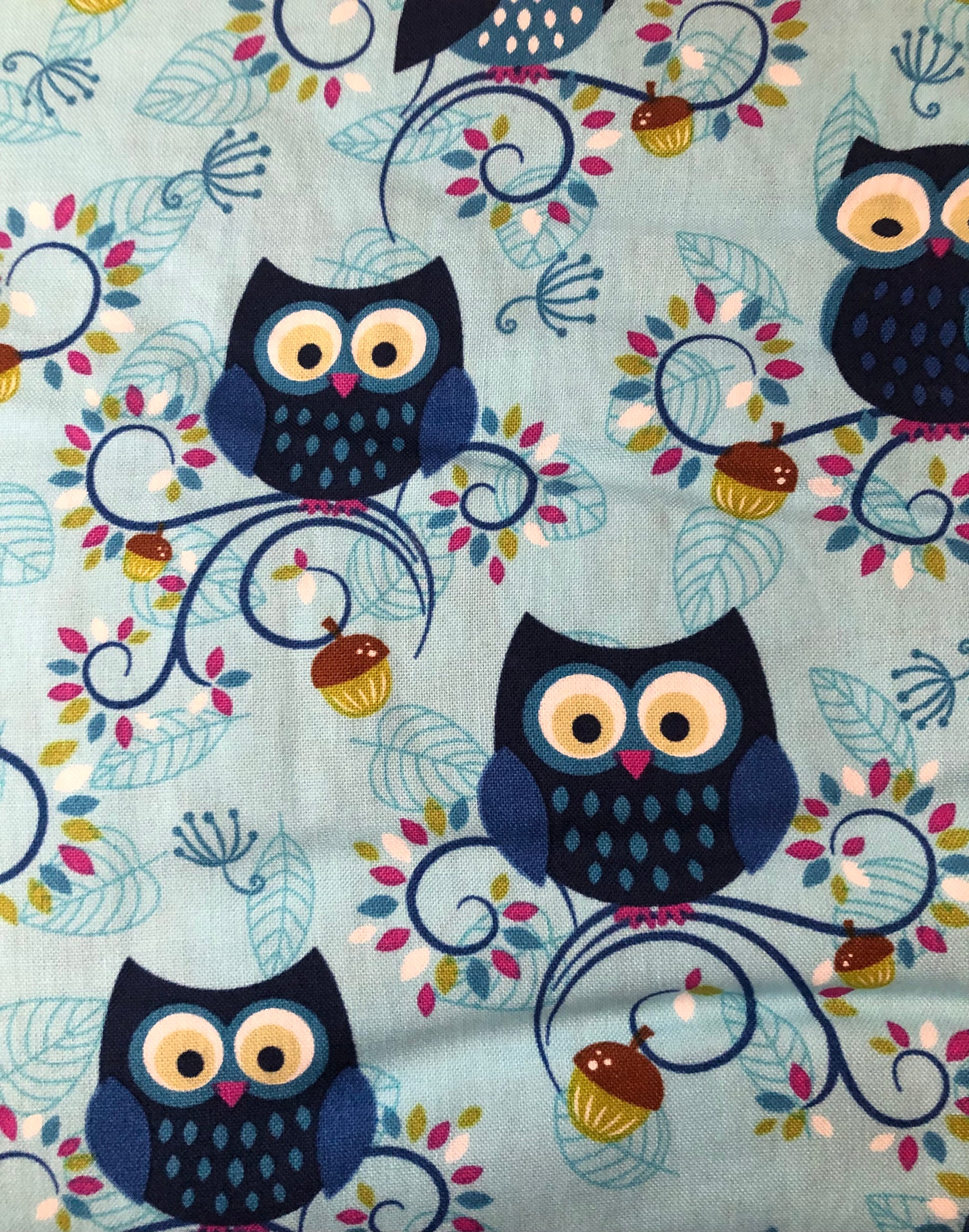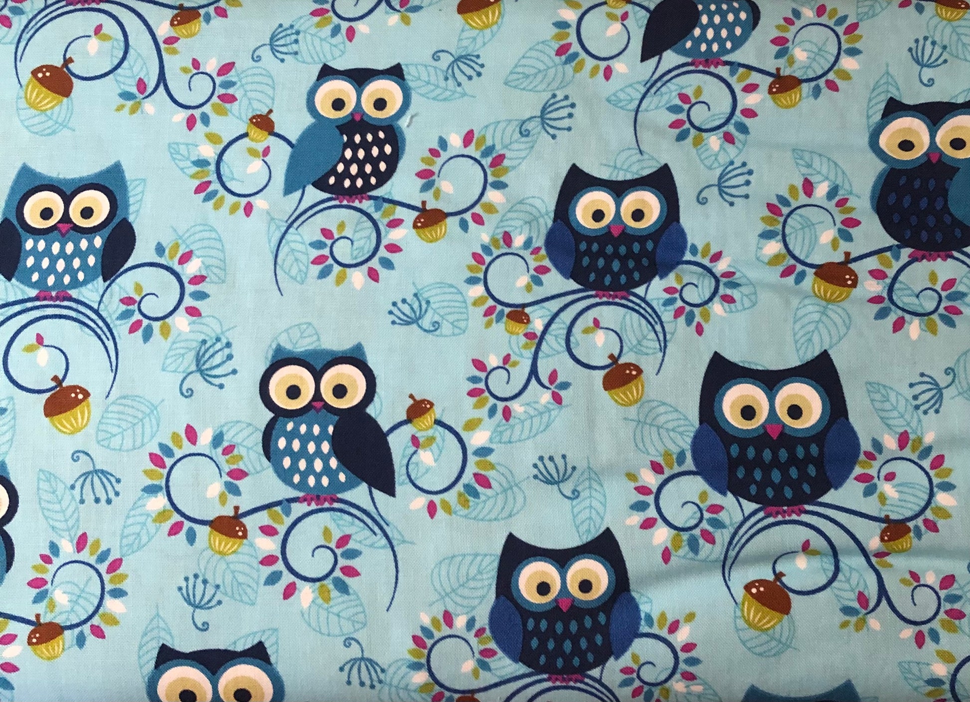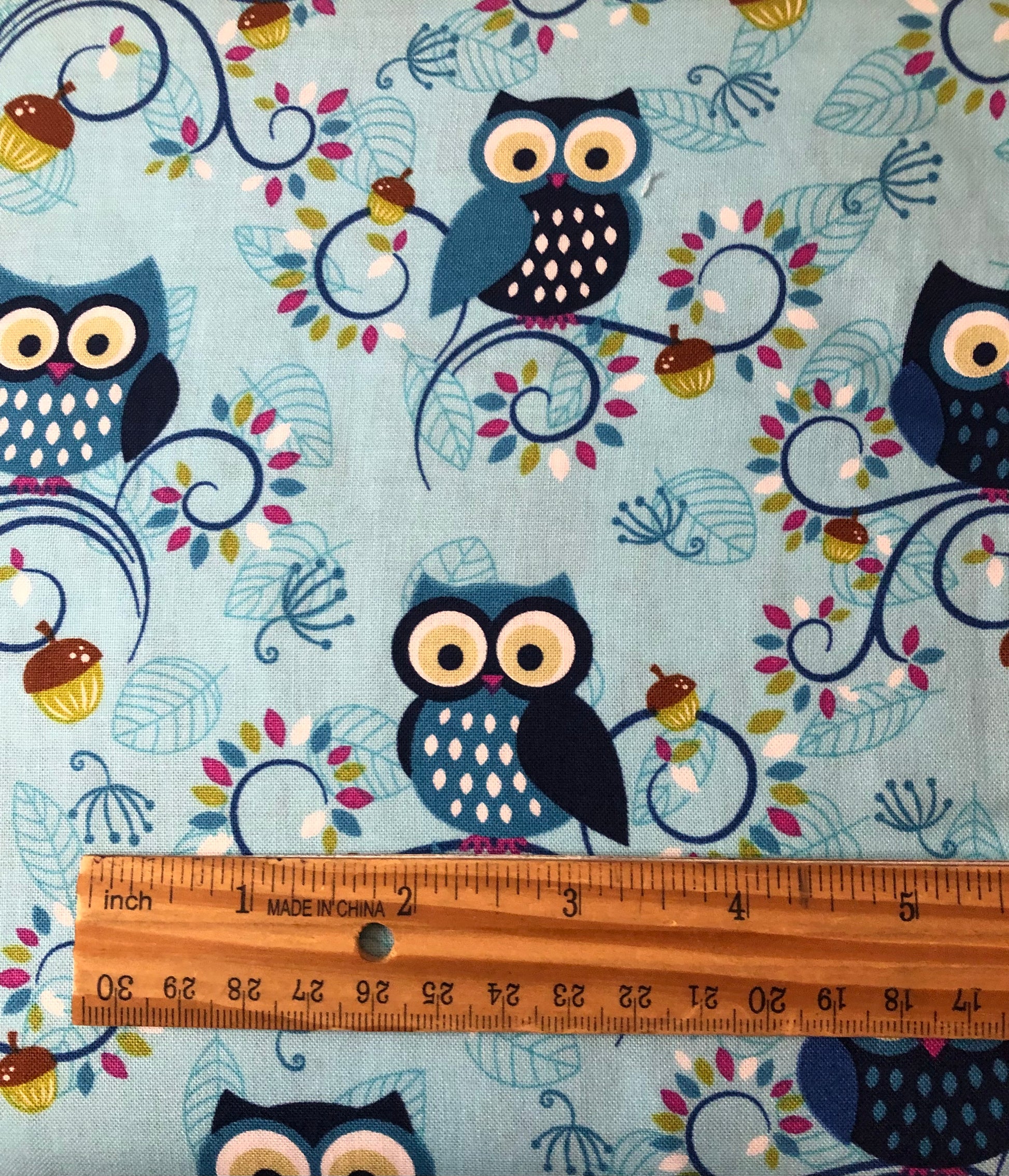 Michael Miller Fantasy Woods Little Happy Hooters Luna Blue Owls, Designer Cotton Fabric, Quilting Fabric, Sold by YARD