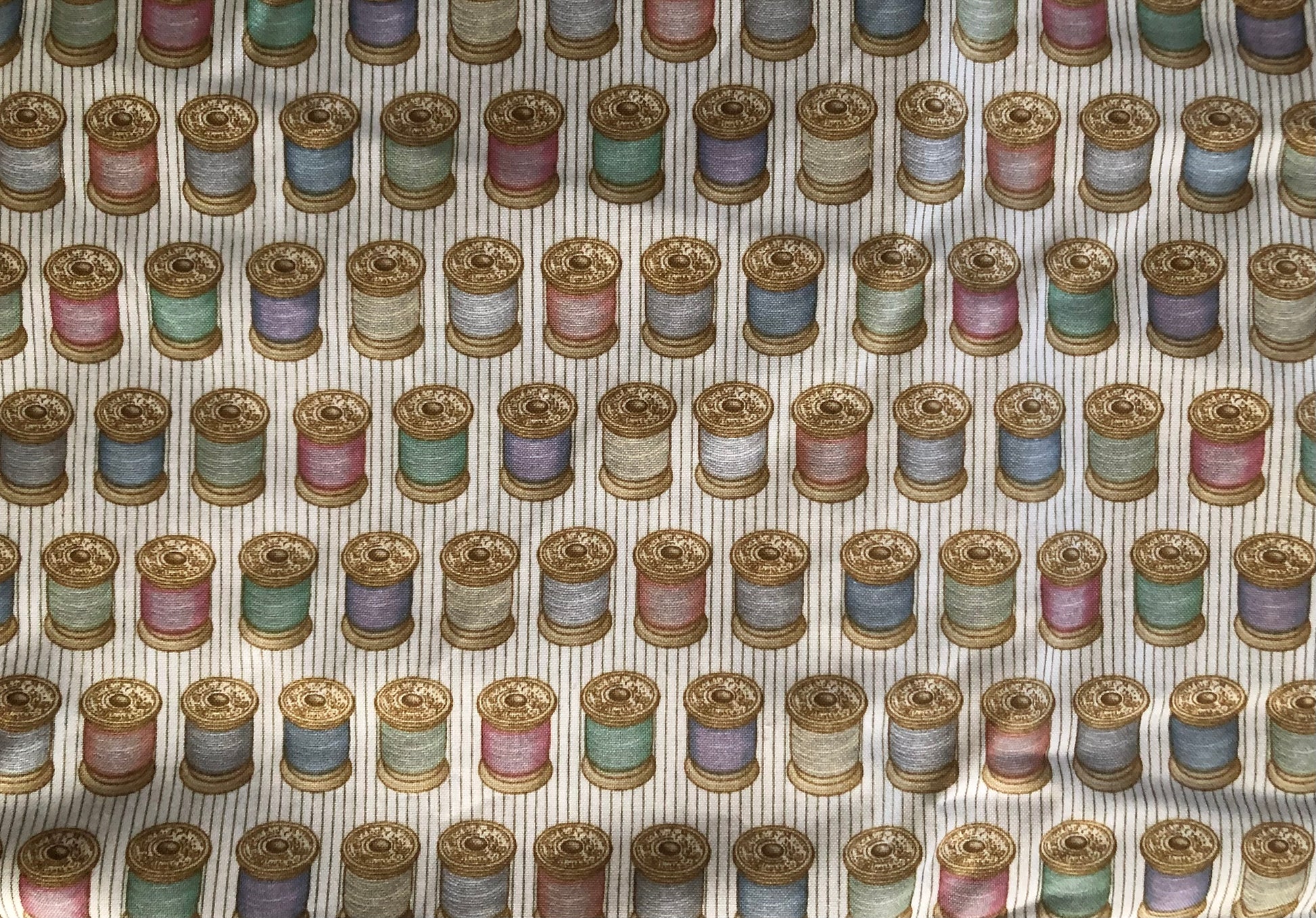 Quilting Treasures by Dan Morris Design "Cute As A Button" Sewing Spools of Thread, Designer Cotton Fabric, Quilting Fabric, Sold by YARD