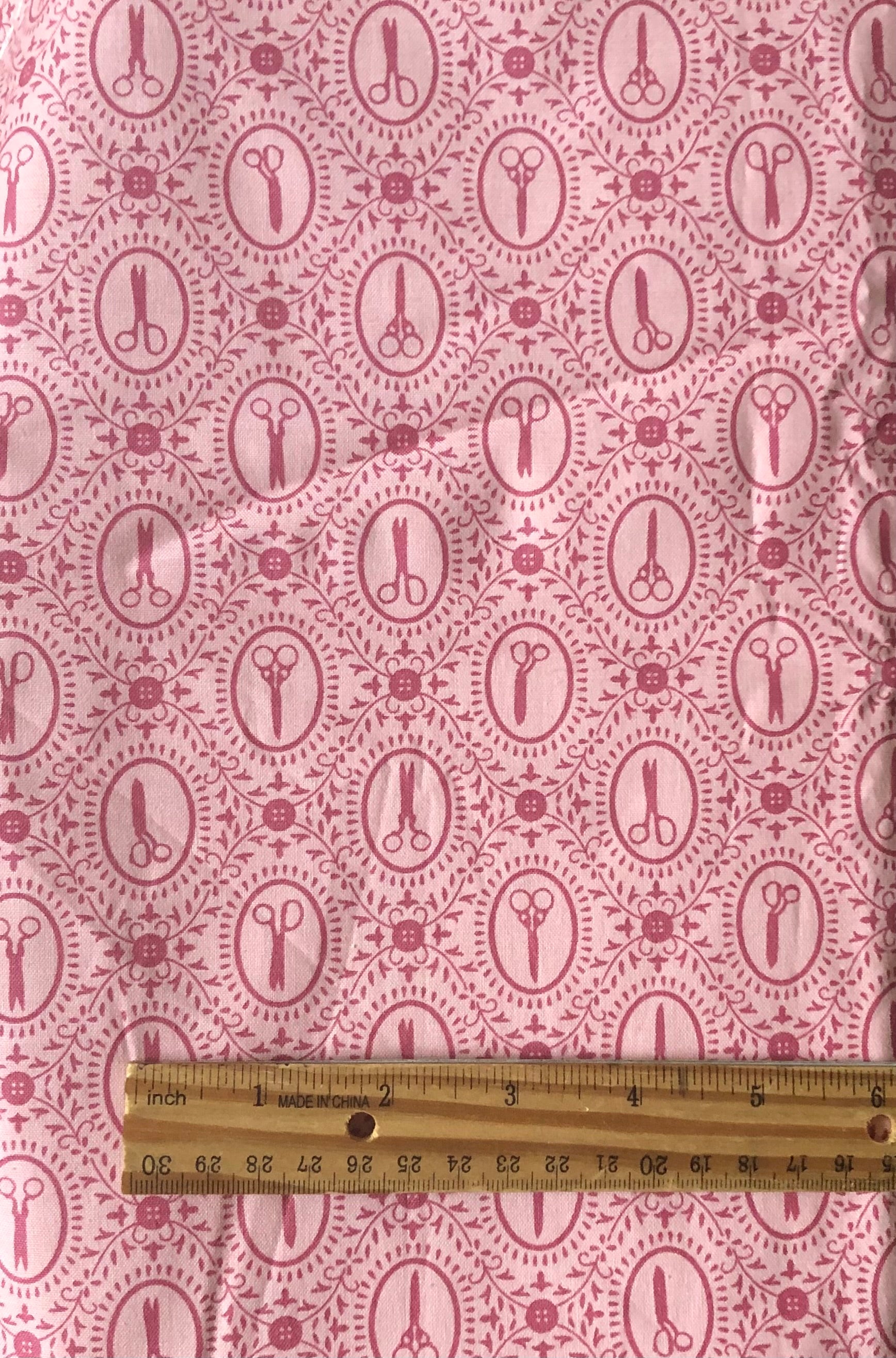 Quilting Treasures Sewing Fabric Cute as a Button Pink Scissors Framed