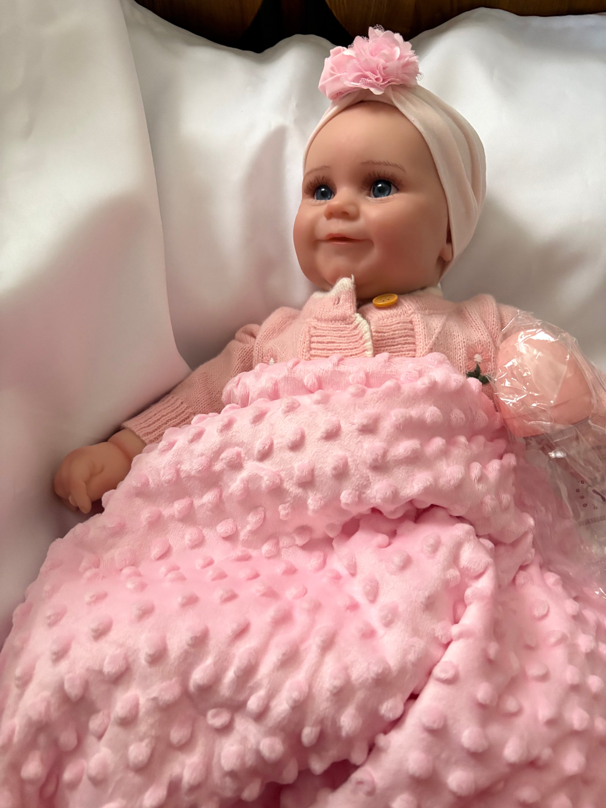 Adorable, Cuddly, Plump Reborn Girl Doll, Lifelike and Realistic, Two Outfits and Blanket