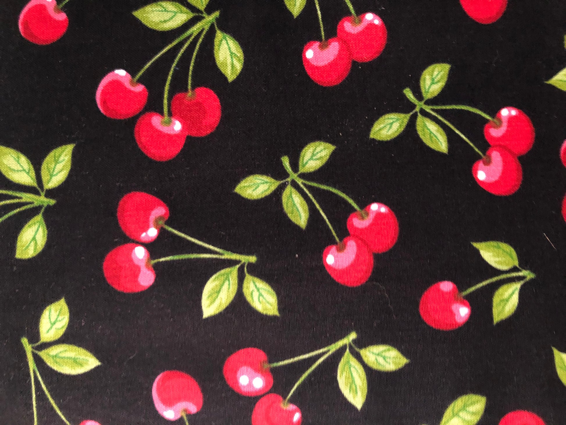 Robert Kaufman Fruit Basket Red Cherries on Black, Designer Cotton, Quilting, Sold by YARD