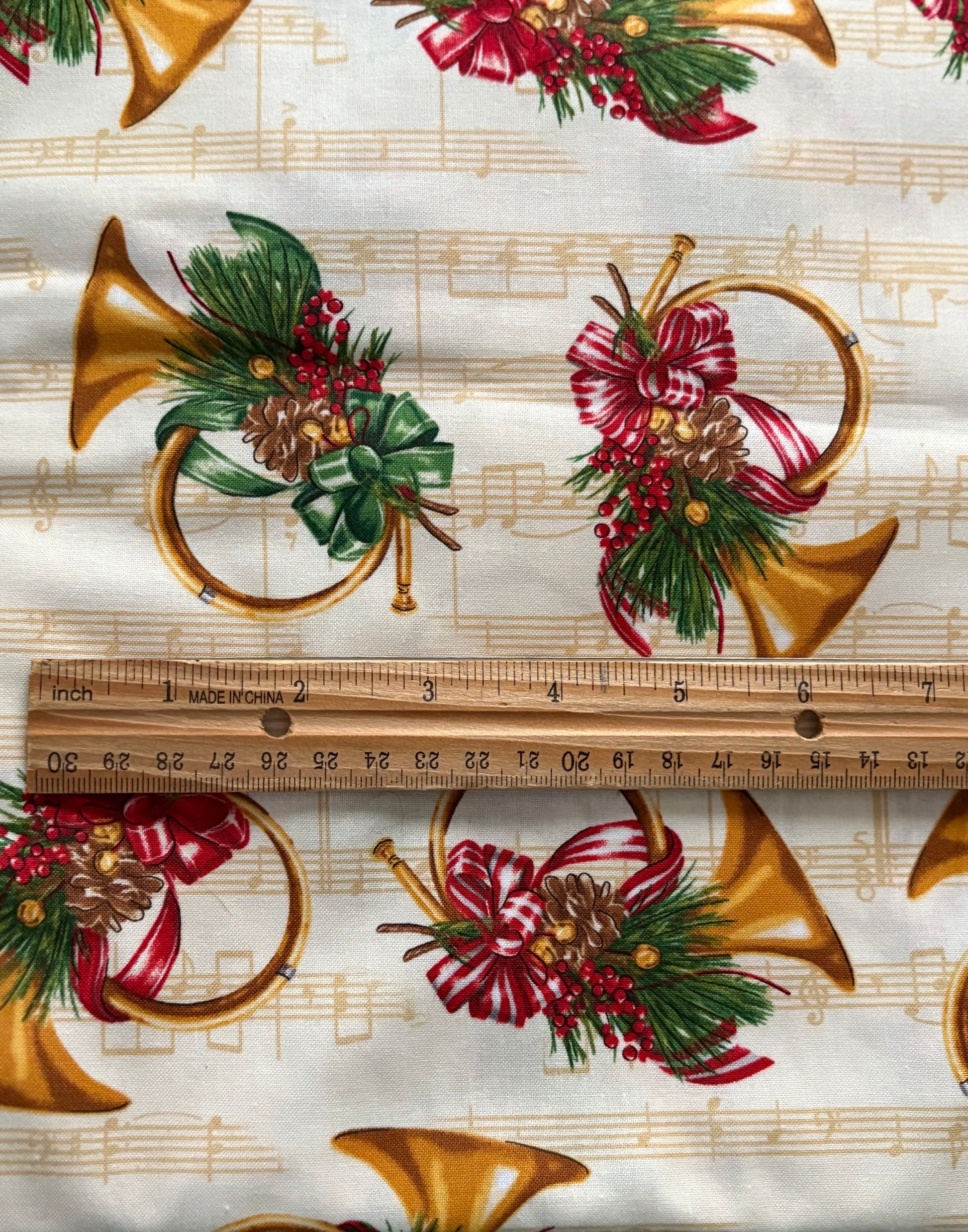 Robert Kaufman Holly Jolly Christmas French Horn Mary Lake-Thompson