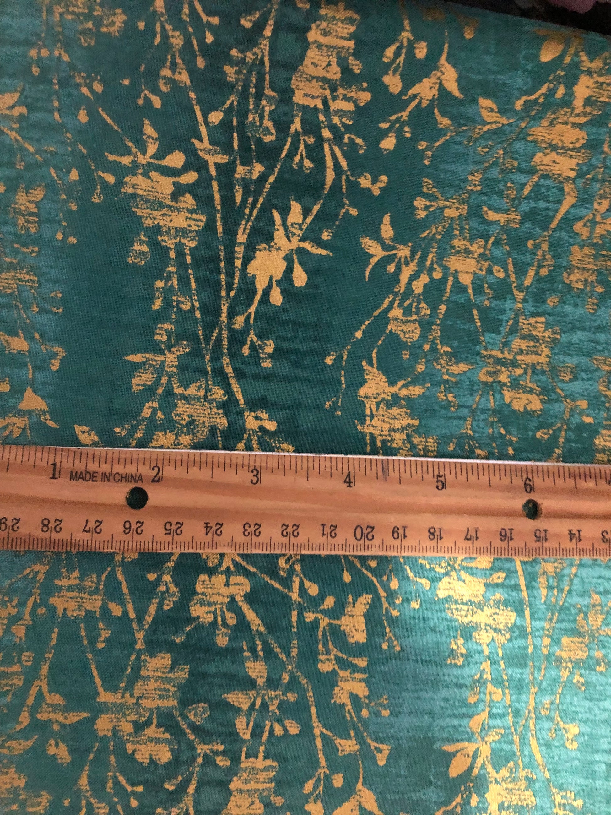RJ Fabrics Shiny Objects Velvety Vines Turquoise Metallic by by Flaurie & Finch, Designer Cotton, Quilting Fabric, Sold by YARD