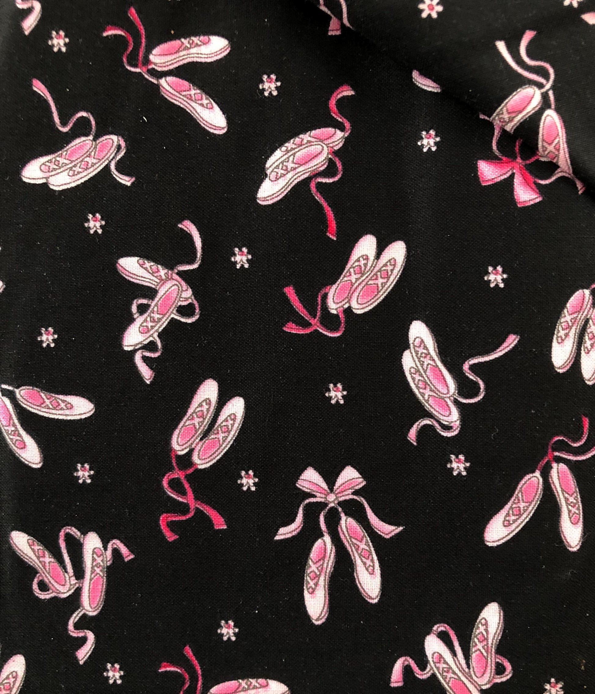 Studio E Pink Ballet Slippers on Black, Designer Cotton, Quilting Fabric, Sold by YARD